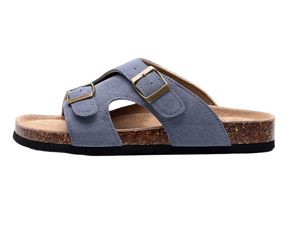 The Primmor Cancún sandal is made from high-quality eco-leather. The flat model has a rounded toe, wide upper straps, anatomical cork insole with a suede surface, EVA sole, stitched finish and side closure with adjustable buckles.