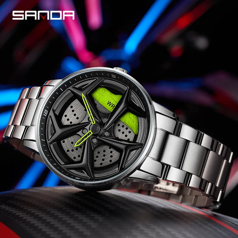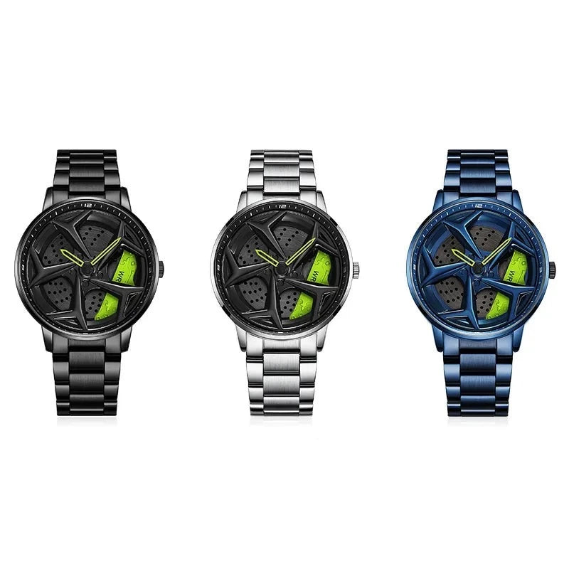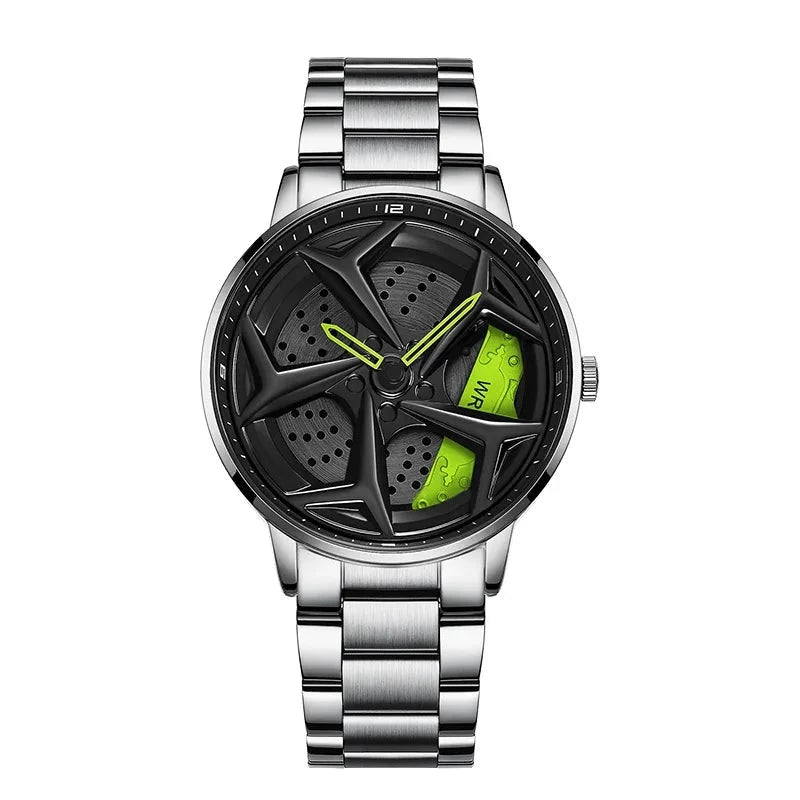 Introducing the SpeedRim P1087, a timepiece that captures the essence of automotive speed and performance. Inspired by the wheel design of GTR sports cars, this timepiece combines innovative style with robust functionality, ideal for the motorsports enthusiast who appreciates precision in both vehicles and fashion accessories.